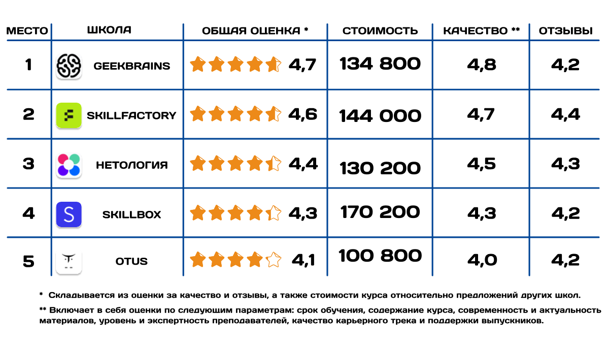 Мы постоянно работаем над улучшением наших обзоров и рейтингов курсов, чтобы они делали процесс выбора простым и понятным. Если вам не хватило какой-то информации, или у вас есть пожелания, как улучшить наши статьи, просим вас написать в комментариях что именно нам стоит изменить или дополнить. Мы чутко реагируем на обратную связь и обязательно добавим недостающую информацию!
