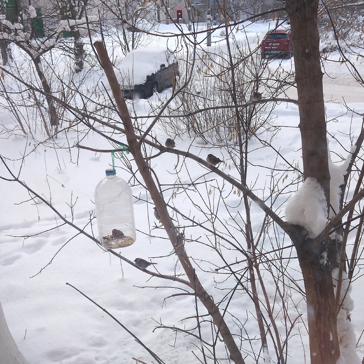 Птицы, которые остаются зимовать в наших краях, нуждаются в подкормке. Мелким птичкам особенно тяжело пережить сильные морозы. За короткий световой день им нужно успеть найти себе корм. Из-за снега и льда сделать это бывает непросто, и некоторые из них не доживают до весны. Птичья система терморегуляции устроена таким образом, что если нет пищи, то она функционирует плохо. Сытая птица сохраняет тепло на протяжении суток. Вот почему важно подкармливать наших пернатых соседей. Но делать это нужно правильно, чтобы вместо помощи птицам не причинить им вред. Кормушки для птиц Для подкормки птиц нужно устраивать кормушки. Самый простой вариант – сделать кормушку из пластиковой бутылки или молочного пакета, вырезав отверстие. В нашей кормушке кого только не было: воробьи, синицы, голуби, дятлы и снегири. Можно потрудиться и изготовить кормушку в виде домика из дощечек или фанеры. Кормушка должна иметь бортики и крышу, чтобы корм не сдувало ветром и не засыпало снегом. Простейшую кормушк