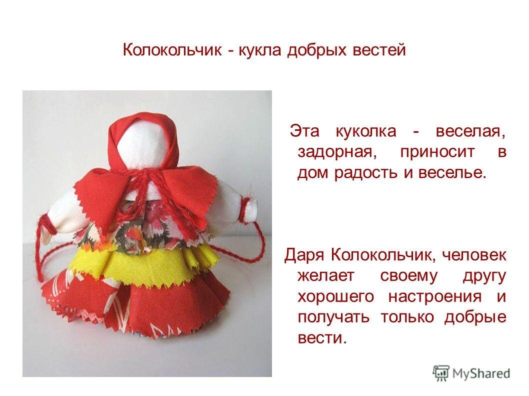 Кукла Колокольчик – это кукла хорошего настроения и атрибут добрых вестей.