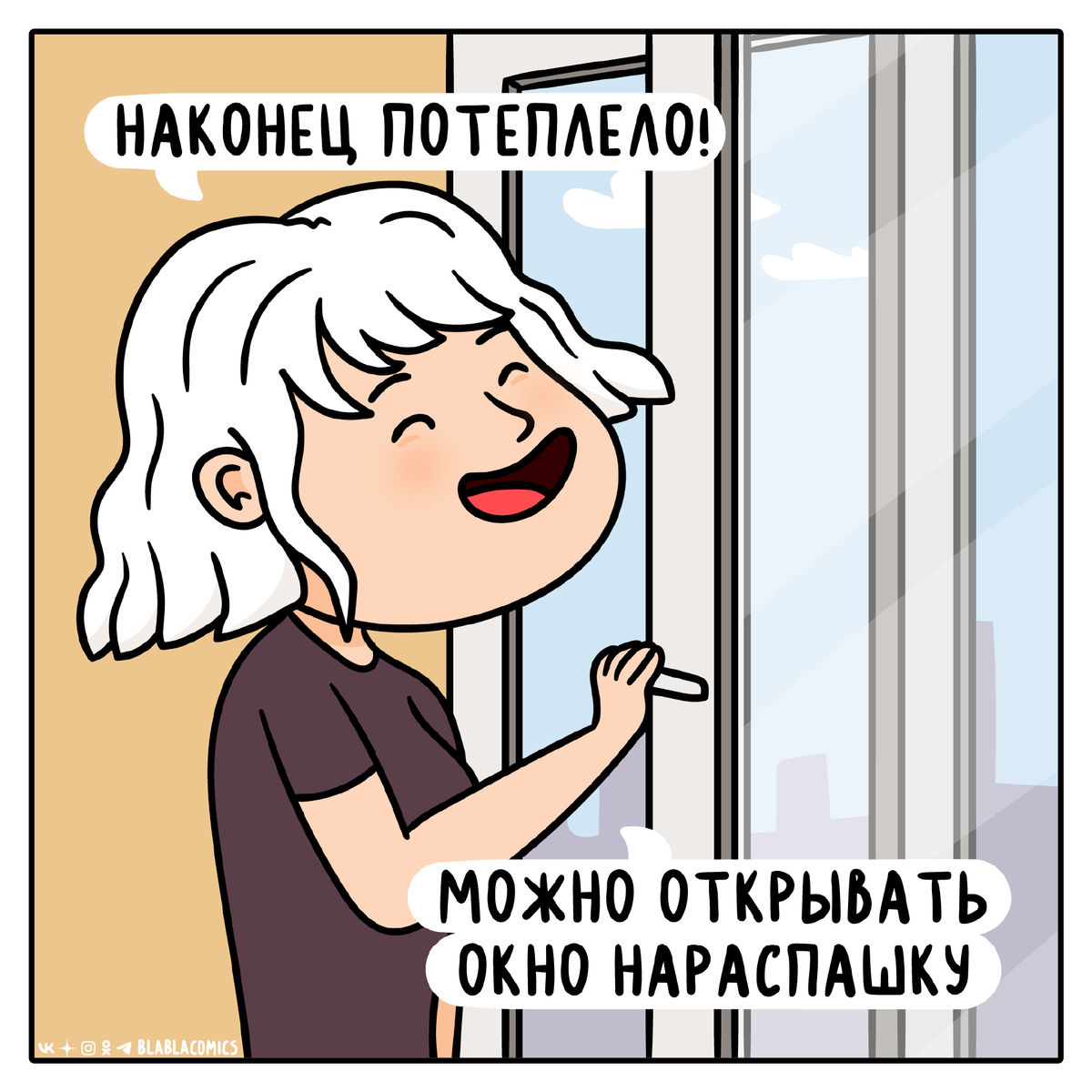 Привет от Сони! Уже чувствуете запах весны? Вот и я нет (смеется). Поэтому ловите подборку комиксов моего пера с весенним вайбом. Настраиваемся на потепление вместе с blablacomics! P.S. В конце вас ждет виртуальная вкусняшка Поехали! Запах весны Обновление гардероба Новое авторское меню Больше комиксов: Что выбираешь?) А ничего нет в наличии, всё разобрали! Этот утешительный шоколадный коктейль для тебя. Угощайся и оставайся с blablacomics | дайджест. Здесь тебя ждут тематические подборки мемов, комиксы и другие приколы.