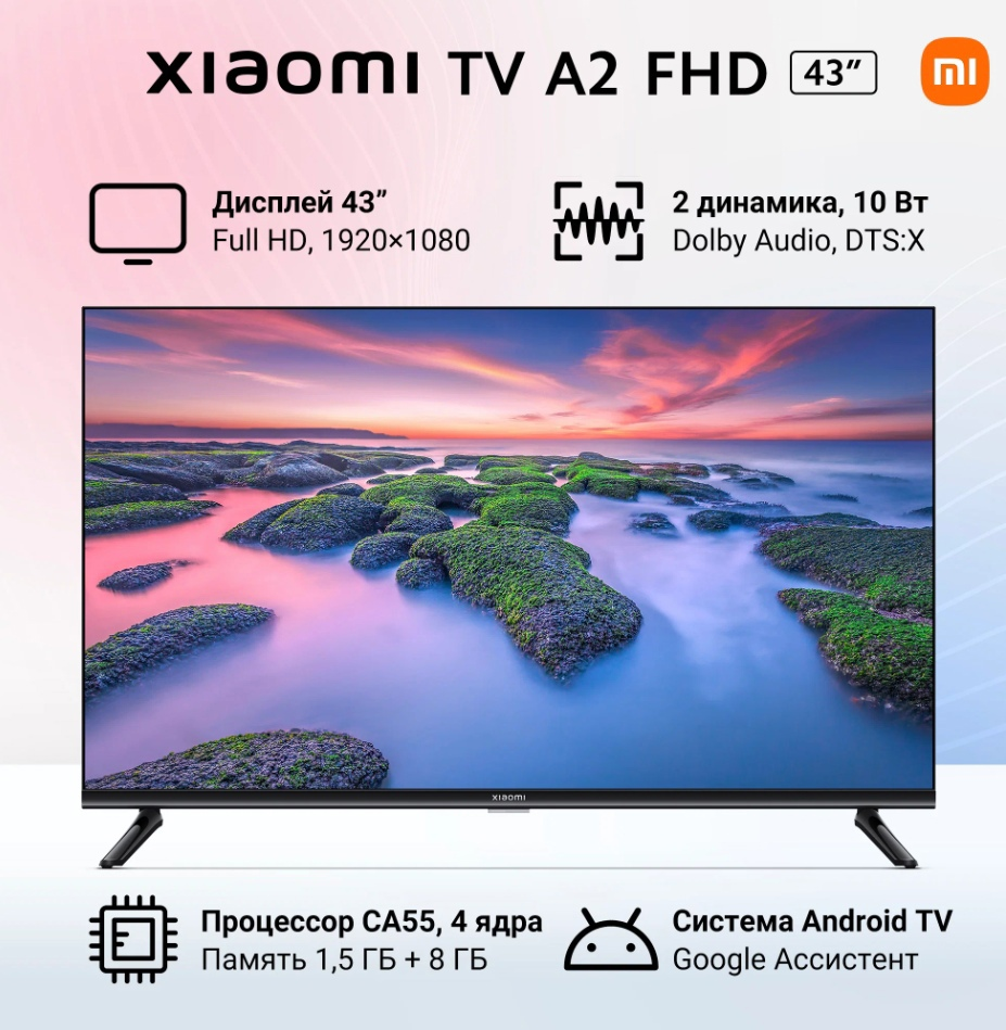 Телевизор Xiaomi TV 43 A2 - это высококачественный продукт, который отличается стильным дизайном и функциональностью. Он имеет тонкий корпус со сверхтонкой рамкой, что обеспечивает высокое соотношение экрана к корпусу. Благодаря разрешению Full HD и дисплею с 1,07 миллиардами цветов, изображение на экране телевизора выглядит невероятно реалистичным и ярким. Платформа Smart TV на базе Android TV позволяет легко управлять телевизором с помощью голосового управления или пульта дистанционного управления.