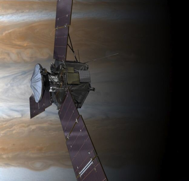Так какова же была скорость Юноны в других системах отсчёта? При выполнении манёвра максимальная скорость была достигнута на высоте 4400 км над экватором Юпитера, и относительно Земли она была несколько ниже объявленной — 222 120 км/ч. Это 61,7 км/с, что все еще составляет примерно 0,02% от скорости света. А вот относительно центра планеты она составляла 208 620 км/ч (57,95 км/с). Относительно Солнца — 213 480 км/ч (59,3 км/с).