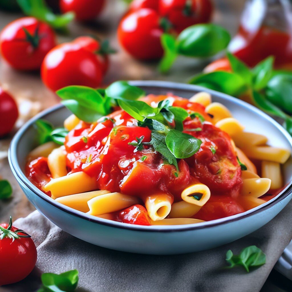 **Ингредиенты:** - Спагетти или любые другие пасты - 250 г - Консервированные помидоры в собственном соку - 400 г - Лук - 1 средний - Чеснок - 2 зубчика - Перец болгарский - 1 шт. - Цукини (кабачок) - 1 шт. - Оливковое масло - 2 ст. ложки - Соль и перец по вкусу - Свежая зелень (петрушка, базилик) для украшения **Инструкции:** 1. Нарежьте лук, чеснок, перец болгарский и цукини мелко. 2. В большой сковороде разогрейте оливковое масло на среднем огне. Добавьте нарезанный лук и обжаривайте, помешивая, пока лук не станет мягким и прозрачным, около 5 минут. 3. Добавьте нарезанный чеснок и обжаривайте еще 1 минуту, пока не почувствуется аромат чеснока. 4. Добавьте нарезанный перец болгарский и цукини в сковороду. Обжаривайте овощи, помешивая, около 5 минут, или пока они не станут мягкими. 5. Добавьте консервированные помидоры в соку в сковороду. Разломайте помидоры лопаткой и доведите соус до кипения. 6. Посолите и поперчите соус по вкусу. Уменьшите огонь и дайте соусу постоять на с