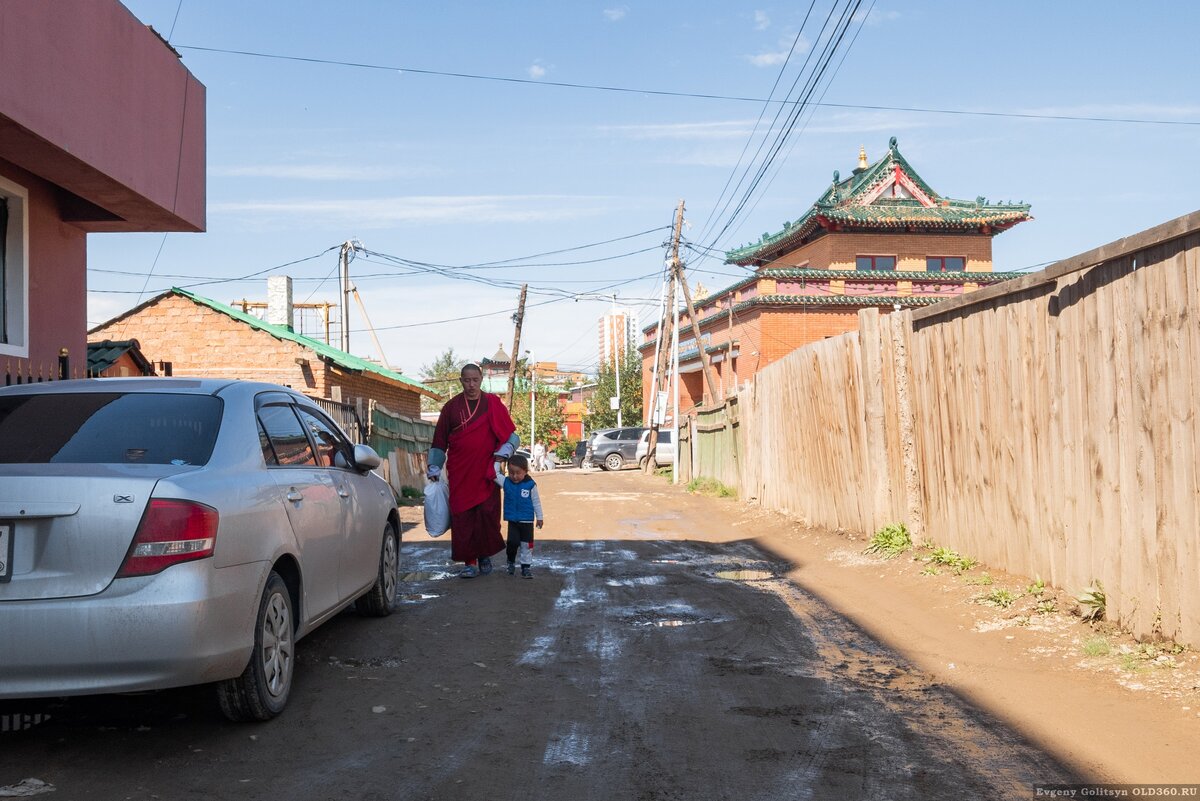 Предыдущий рассказ Фоторепортаж с улиц УБ. На некоторых перекрестках вот такие постаменты для гаишников. При работающем светофоре смысл не понятен. Если в других городах мототехника ограничивалась только китайскими малокубатурниками, то в УБ с этим уже лучше. Иногда на монгольских вывесках встречаются забавные надписи. К слову о языке. Бытовка слева хунсний мухлаг переводится гуглом как лебединое стойло... На улицах часто можно встретить пьяных личностей. Но обычно они мирно лежат на тротуаре. Из культурной программы посетили в этот день Дворец Богдо-гэгэна. Музей со множеством старинных экспонатов в богато украшенном зимнем дворце монгольского хана начала XX века. Внутри снимать нельзя, но если очень хочется... Экспозиция продолжается в белом здании с наличниками (слева). Экспонаты там представлены уже более предметно, чучела животных, карты, доспехи, трон и т.д. Снимать все это богатство тоже нельзя. В целом хороший музей, можно рекомендовать к посещению. Билеты стоят недорого. После