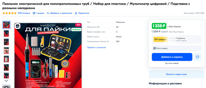 Сам товар - это набор для пайки (Паяльник, насадки, припой и тд.)