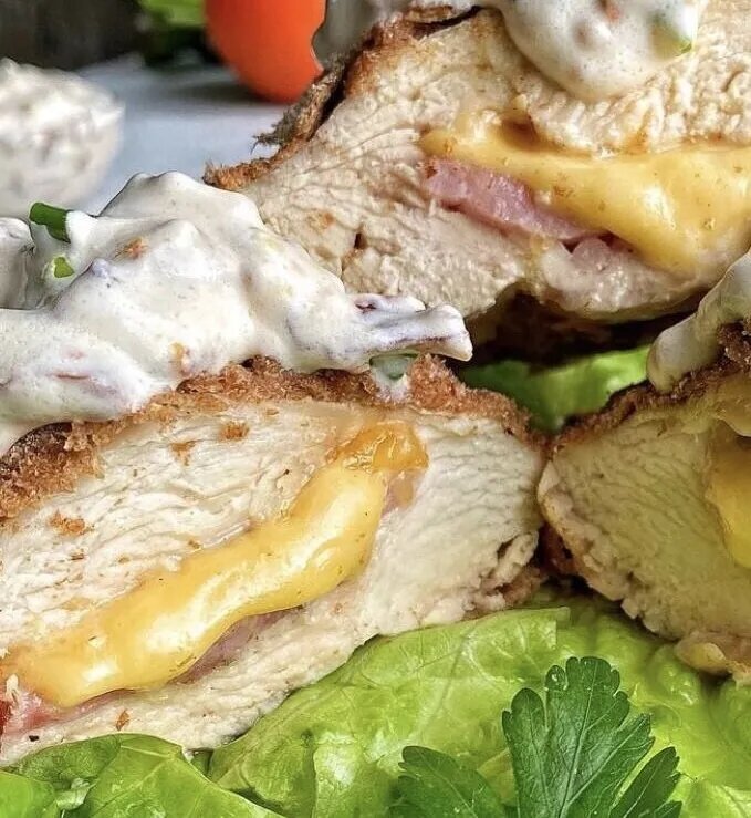 Очень🔥сочная, нежная и вкусная куриная грудка с ветчиной, 🧀сыром и хрустящей корочкой!