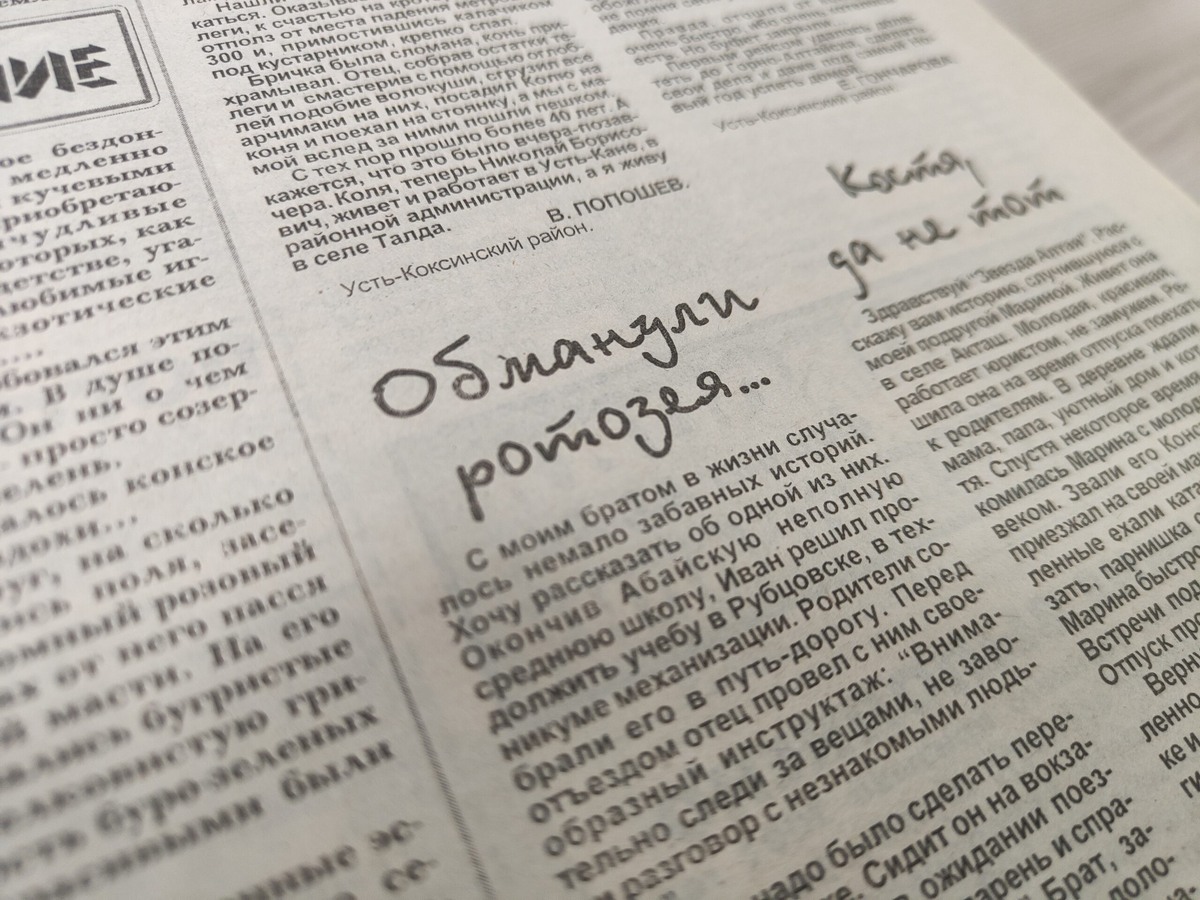 В начале нулевых в “Звезде Алтая” под рубрикой “А еще был случай…” печатались забавные истории жителей нашей республики – смешные, грустные, наводящие на размышления. Ими охотно делились наши читатели. Было немало трогательных или до слез смешных воспоминаний, которые и правда нарочно не придумаешь. Не возродить ли нам эту рубрику? Мы об этом подумаем, а пока делимся одной из таких историй…
