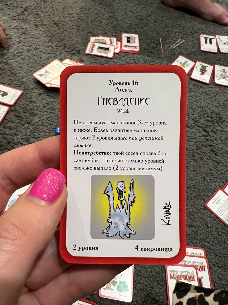 Итак. В этой статье мы поговорим о самих монстрах, о том как их усилить и о бое с несколькими монстрами. Давайте начнем. Начнем. Монстр, вытянутый в открытую при первой фазе игры, атакует вас тут же. Если монстр попался в любой другой момент игры, то он уходит в вашу руку. Этого монстра можно будет сыграть уже непосредственно в момент фазы "поиска неприятностей", либо же при наличии определенных карт, сыграть этих монстров против другого игрока. Каждый монстр считается одним врагом, даже если в карте прописано множественное число. Перейдем к усилению монстров. Стоить понимать, что не смотря на название этой части, такие карты могут не только усилить монстров, но и ослабить их боевую силу. Также есть карты на изменение количества получаемых сокровищ после победы монстров. В любом бою и любой игрок может использовать неограниченное количество усилителей. Все усилители суммируются между собой, но если в бою участвует не один монстр, то хозяин усилителя обязан указать на какого имен