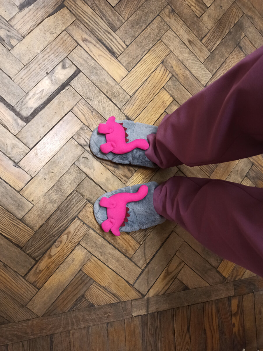 Очень люблю, когда в спектакле продуманы все детали, даже если вероятность увидеть некоторые из них из зрительного зала слишком мала. Например, недавно с удивлением и удовольствием обнаружила, что у героя спектакля "Из жизни ископаемых" Калининградского драматического театра на тапочках - розовые динозавры! Персонаж эпизодический, в своей новелле он, в основном, спит в кресле, укрытый пледом. Вскакивает лишь в финале истории - произносит несколько слов и убегает. Сколько раз сидела в зале - динозавров на тапках не замечала. А они есть! И ведь какая классная деталь - милая, подходящая общему оформлению спектакля (сценография основана на скелетах динозавров в музейных залах). Интересно, а много ли зрителей видят этих розовых диплодоков из зала? В разговорах, которые звучат после спектакля в фойе, ни разу не слышала. Зато слышала вот такие отзывы и впечатления: А здесь рассказываю о тех деталях, которые сама готовила для спектакля Забайкальского драматического театра - тоже мало кто