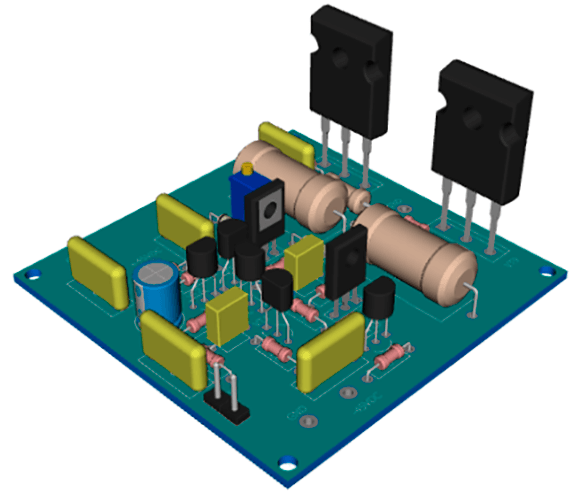 В статье представлена довольно простая конструкция транзисторного усилителя, мощностью 100 Вт, с выходным каскадом на МОП-транзисторах. Конструкция создавалась при компромиссах, главным критерием которого была цена, а также простота, мощность, и приемлемое звучание. Для простоты схемы было решено отказаться от раздельного питания выходных и входных каскадов. Из особенностей схемы можно отметить включение двух транзисторов VT1, VT3 и VT5, VT7 в источниках тока дифференциального (VT2, VT4) и второго каскада усиления (VT6), что позволило улучшить линейность схемы и снизить искажения при её простоте. В управлении затворами выходного каскада на VT8, VT9 применены диоды и подстроечный резистор, что довольно редко в схемах управления полевыми транзисторами УМЗЧ. Сопротивления ток ограничивающих резисторов R12, R13 могут быть от 100 до 560 Ом, без каких-либо ухудшений характеристик схемы. Общая ООС осуществлена через R9, глубина которой ограничена R6C3C4. Выходной каскад загружен примерно н