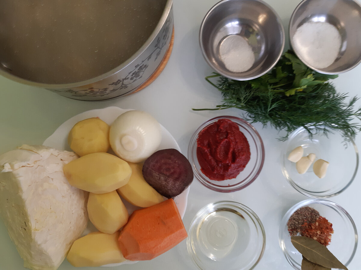 Подаём с черным хлебом, сметаной, чесноком, салом.