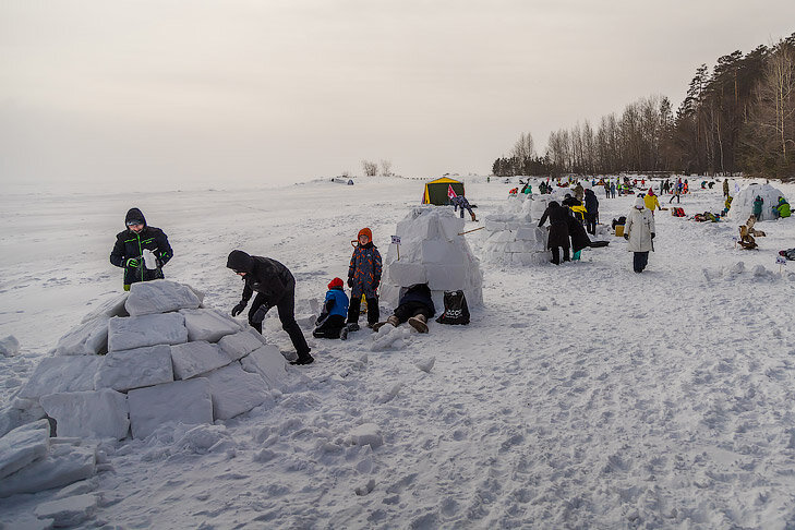 В областном центре прошел девятый фестиваль «Иглу-2024 — город эскимосов». Представляем вам фото самых интересных моментов мероприятия. Фестиваль традиционного прошел на берегу Новосибирского водохранилища. В нынешнем году в нем приняли участие 1300 новосибирцев и гостей из разных регионов России, причем добрая четверть из них – дети и подростки. Даже крепкий мороз не стал препятствием и не отпугнул участников и гостей мероприятия. Главная цель зимнего праздника и условие победы – постройка национального дома эскимосов из снежных блоков в строгом соответствии с правилами. Жюри оценивало высоту и диаметр иглу, скорость их постройки. Параллельно все желающие также знакомились с традициями эскимосов и могли послушать этническую музыку северного народа. За происходящим в течение всего дня наблюдал фотокорреспондент VN.ru Андрей Заржецкий. А безопасность участников и правопорядок на мероприятии обеспечивали сотрудники линейного отдела МВД России в речном порту Новосибирска. Напомним, в мину