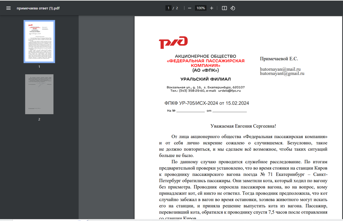Срок ответа на любое обращение гражданина составляет 30 дней. Через месяц после трагической гибели Твикса подошло время некоторых официальных ответов. Я писала несколько запросов в ФПК, работодателя проводника , выбросившей кота на улицу. Ответ не выдерживает никакой критики: проводник думала. Как в детском садике: Маша тоже хочет играть этой лопаткой, она подумала, что ты поделишься....Маша боится собачек и поэтому она спрятала твою игрушку. Проводник проходит обязательное медицинское освидетельствование и уровень психического и психологического развития у него должен быть чуть выше это условной Маши. Ответ, который направили ФПК, он навел меня на мысль , что нас считают дураками, как будто никто , кроме руководителей ФПК не справится с прочтением приказа Минтранса и удовлетвориться всего лишь одним его пунктом. Как же, мне сказали, что проводник вагона применила пункт № , значит, так оно и есть. Вот так оценивает ФПК случившееся. В своем первом обращении я как раз попросили д