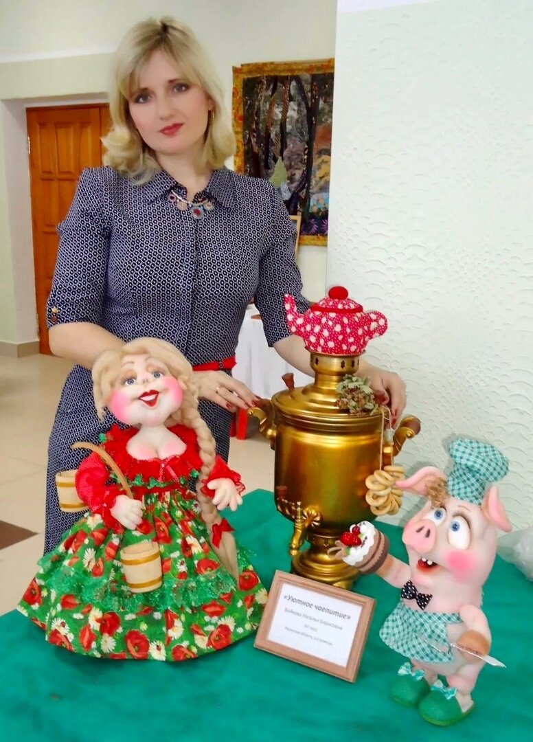 Мастерица Наталья Бойнова – о создании бабушек, внезапных идеях и куклах внутри себя В Рязанском областном научно-методическом центре народного творчества (ул. Урицкого, 72) открылась персональная выставка «Деревенька текстильных человечков», где свои авторские куклы и изделия декоративно-прикладного искусства представила мастерица из Ермишинского района Наталья Бойнова. Из витрин на нас смотрят барышня, Баба-яга, новогодний гном, влюбленная пара на скамейке, чеснок-оберег и бабушки, бабушки, бабушки. О своем увлечении автор рассказала художнику «Новой». – Рукоделием занимаюсь с самого детства. Сначала шила одежду для кукол, пробовала вышивать крестиком, а бабушка научила меня вязать спицами. После того как в 1999 году пришла работать педагогом дополнительного образования в Центр развития творчества детей и юношества, где теперь веду объединения «Шитье для куклы», «Текстильная кукла» и «Театр кукол», моя жизнь и работа полностью связаны с творчеством. Сама увлеклась созданием кукол в