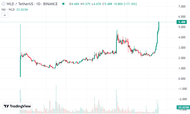 Курс Worldcoin (WLD) ведущей криптовалюты в категории токенов искусственного интеллекста (ИИ) обновил максимумы на фоне новостей о запуске нейросети Sora. Цена Worldcoin установила новый исторический максимум в $5.4, согласно Tradingview. Рыночная капитализация токена выроста до $700 млн. По данным Coinglass объемы торгов выросли до $180 млн. в сутки. Проект Worldcoin был основан Сэмом Альтманом, исполнительным директором OpenAI, компании — разработчика чат-бота ChatGPT. OpenAI запустила 16 февраля нейросеть Sora - модель искусственного интеллекта, позволяющую пользователям преобразовывать текст в видео. Новостной поток вокруг запуска графической нейросети Sora отразился и ведущих на токенах проектов из категории «искусственный интеллект», многие их которых выросли в цене более чем 30% за сутки.