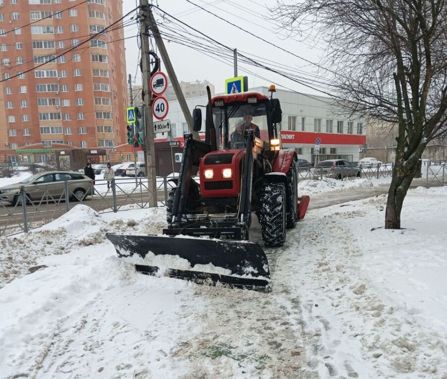В Курске убирают снег с дорог 48 единиц спецтехники