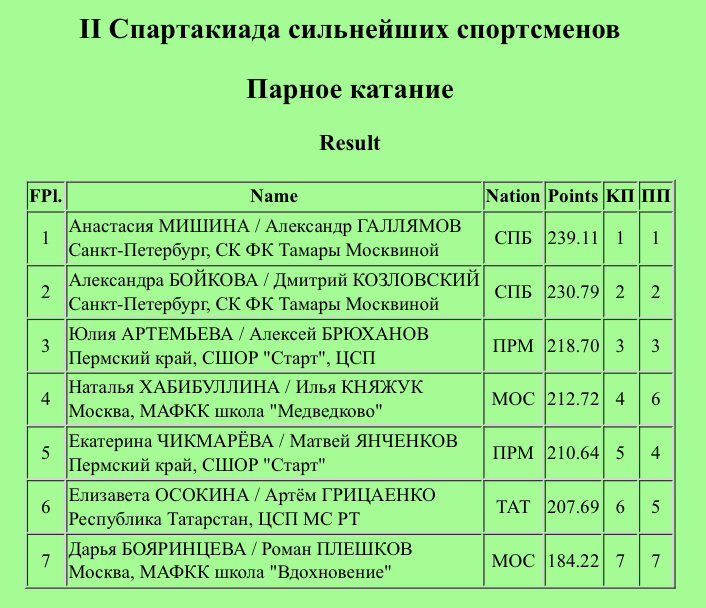 Спартакиада сильнейших. Спортивные пары. Мишина - Галлямов — золото! Бойкова - Козловский вторые, Артемьева - Брюханов третьи!