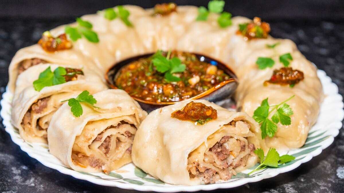 Всем привет! Представляем вашему вниманию рецепт приготовления жаркого «Ханума». 1. Приготовьте крутое тесто, как на пельмени: в глубокую миску разбейте 1 яйцо, посолите, влейте 100 мл холодной воды и всыпьте муки, сколько потребуется. 2. Замесите тесто и тщательно его вымесите, чтобы оно не приставало к рукам. 3. Скатайте в шар, поместите в ту же миску, накройте пленкой и дайте 15 минут вылежаться. 4. В любой мясной фарш (600 г) по вашему вкусу добавьте нарезанную луковицу, рубленую зелень укропа, специи и перемешайте. 5. Из теста раскатайте круг (чем тоньше, тем лучше) и равномерно распределите начинку. 6. С одного конца, аккуратно, сверните все рулетиком и выложите в смазанную маслом круглую форму в виде спирали. 7. Сверху сделайте на тесте несколько небольших надрезов и залейте смесью сметаны и майонеза (по 100 г) в равных количествах. 8. Запекайте в духовке 40 минут. Приятного аппетита! Канал: Паблико.
