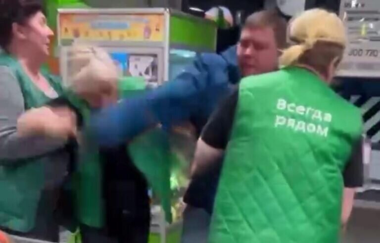 Лютая потасовка попала на видеозапись, сделанную в одном из супермаркетов сети “Пятерочка”. В местных пабликах, по которым разошелся жесткий ролик, утверждается, что драка покупателей и продавцов произошла якобы в Брянской области. Что именно послужило поводом к дерзкой силовой разборке, должны установить, вероятно, брянские правоохранители. Если, конечно, речь действительно идет об одной из местных “Пятёрочек”. Нередко в региональных пабликах появляются сообщения, которые не имеют к Брянщине никакого отношения. А торговый зал супермаркета, запечатленный на представленной видеозаписи суровой драки, является стандартным для большинства обновленных “Пятёрочек”. Если же принять за истину, что драка покупателей и продавцов “Пятёрочки” произошла в Брянске или области, то хронология событий случившегося примерно такая. Между дамочкой на кассе и продавцом-кассиром возникло некоторое недопонимание. Возможно, из-за бутылки водки. Женщины стали, видимо, друг друга обзывать. Нехорошими словами ти