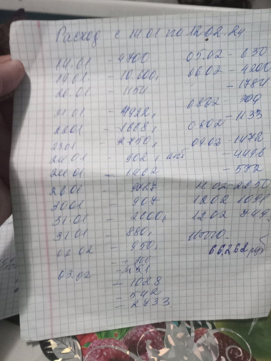 Ну посчитала хозяйка приход - расход за месяц, ну вот сами видите какие расходы, непостижимые.