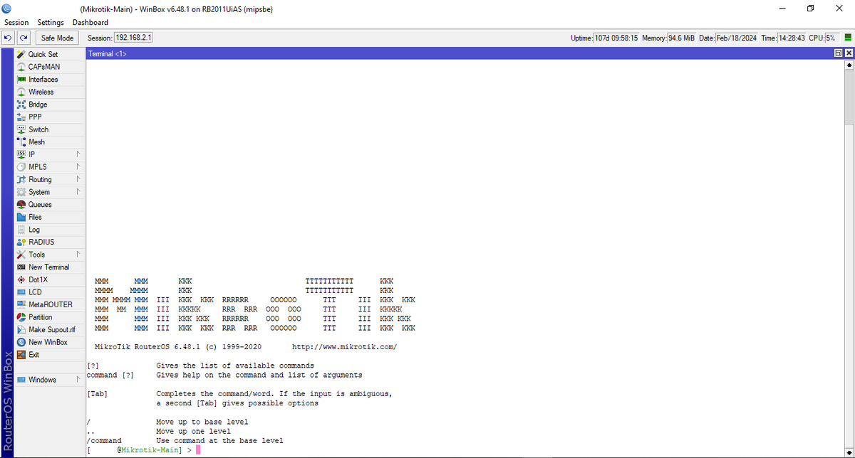 Делать все сильно проще и информативнее из консоли, хотя ранее я делал почти все из графического интерфейса. Подключаемся через Winbox и идем в консоль: