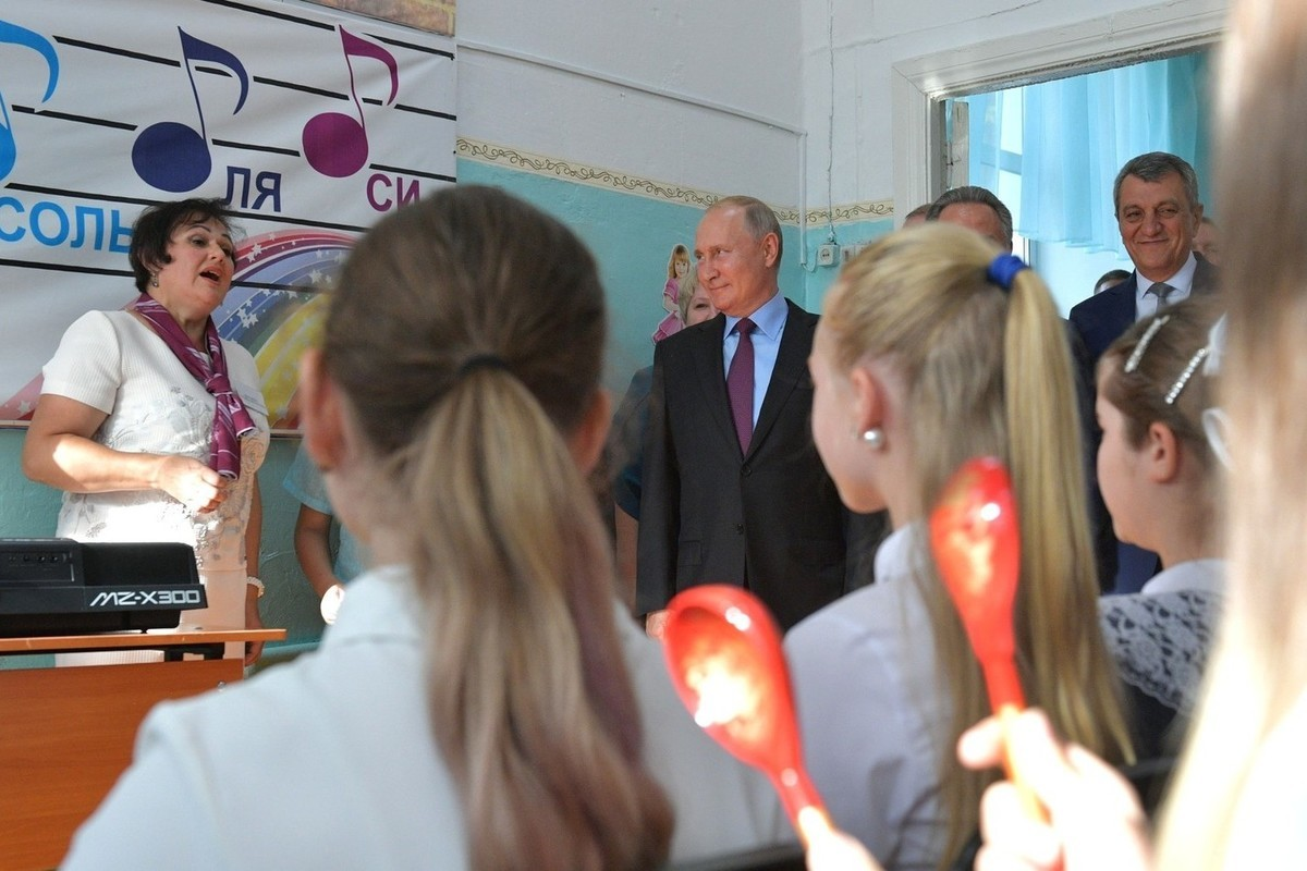 Вы, конечно, правы, Булат Шалвович. Конечно, ждём. И школьной, и вообще. И пусть бы она большая была... Ну, будет, наверное... Повела волнующаяся директор президента в кабинет ОБЖ. И там рассказала, что в школе работает "увлеченный педагог". Он окончил институт, отслужил в армии и уже 12 лет работает с детьми. В школе педагог координирует работу Юнармии, занимается туризмом и "всё у него складывается", отметила она. "В общем он такой крутой-крутой", - сказала директор. Президент улыбнулся и заметил в ответ: "Надо побольше крутых мужиков в школы, правда?" Конечно, правда! Да только