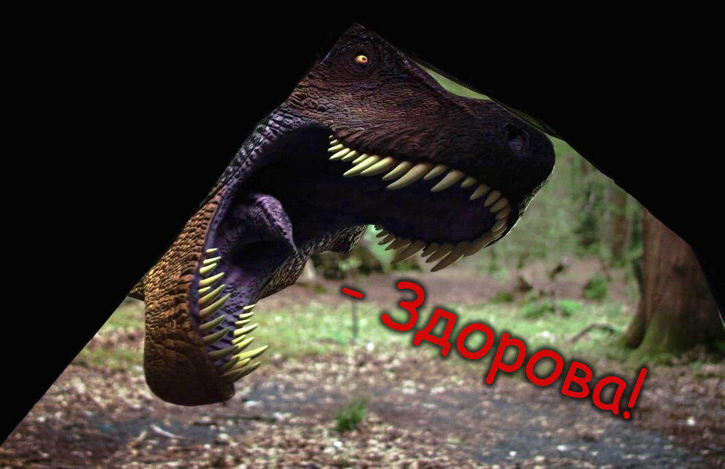 Но людям повезет, потому что в их неравную дуэль с динозавром вмешается здоровый мутант. Монстры начнут бить друг другу кабины, и люди воспользуются этим, чтобы убежать. Парочка сбежит дальше в лес, где найдёт вертолет. Казалось бы, можно попробовать улететь, но я не помню, чтобы хоть один из выживших умел управлять летучим агрегатом. Да это и не суть, ибо весь кайф испортят монстры. Здоровый динозавр захавает мужика, а рыжулю съедят вездесущие птерозавры. Так все и кончится. Не выживет никто. Монстры восторжествуют. Однако это не всё...