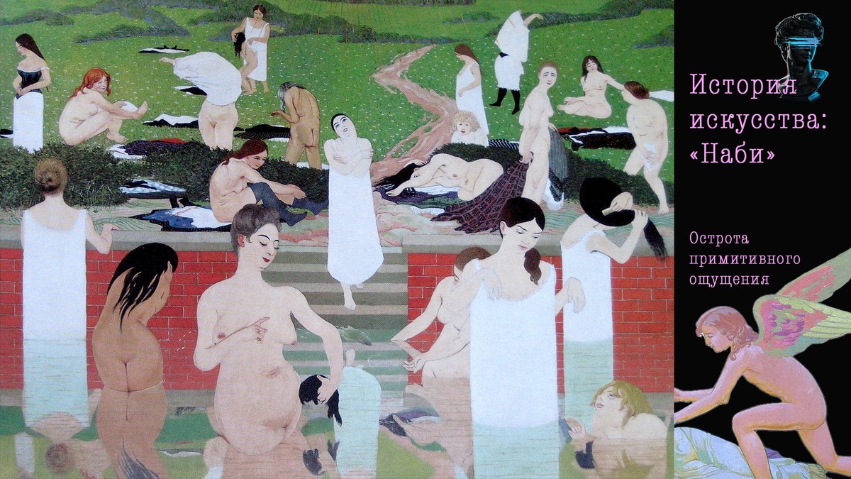 На этом маленьком полотне главного теоретика движения отработка тела и лиц ровным одинаковым цветом соответствует извилистым полоскам одежды, что подтверждает характерное желание «наби» объединить символизм с японским искусством.