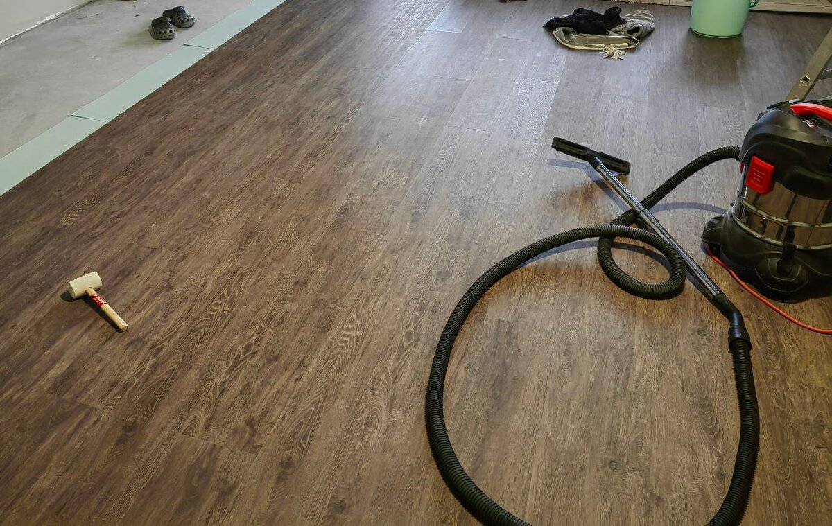 Замковые соединения кварцвиниловой плитки отлично её держат и превращают сборку пола в обычный конструктор. Но при соединении иногда требуется приложить усилия с риском сломать кромки замка. Поделюсь своим опытом сборки. Начну с того, что что укладчиком пола в собственном доме я стал поневоле: рабочие при настиле пола не учли, что плитки разных партий отличаются покрытием. В итоге в самом большом помещении - гостиной - часть пола блестела больше, чем другая матовая. Бросалось в глаза это только при взгляде напротив окна, сверху и при электрическом свете всё выглядело отлично. Знаю, что партии нужно сравнивать для керамической плитки. Оказалось, что это актуально и для кварцвинила. Правда, у керамики кроме покрытия от партии к партии может меняться размер и толщина. У кварцвинила с размерами всё оказалось почти хорошо. Почти - потому что одна из партий с другими всё-таки отказывалась нормально стыковаться. Пришлось подрезать замки и шов укладки немного виден. Всего партий я насчитал че