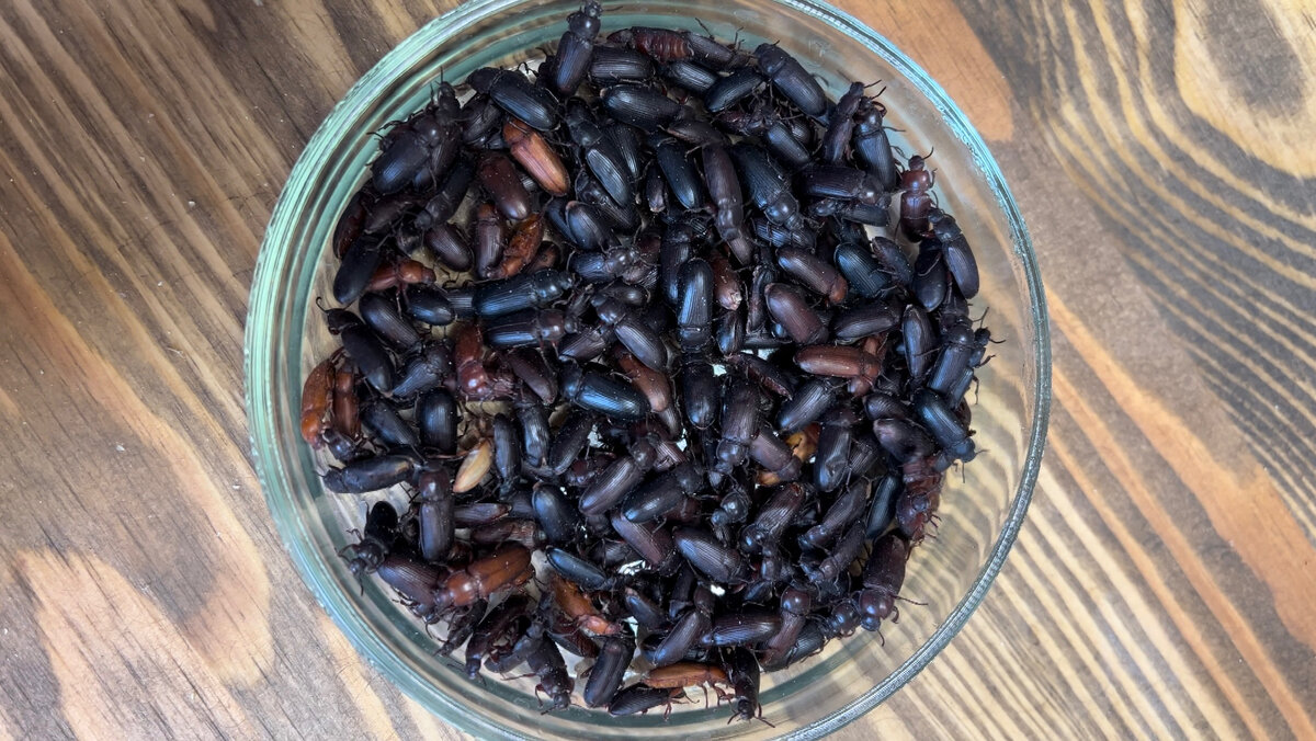 - Каждые 14 дней перемещают взрослых насекомых со старой в новую среду. И если количество жуков резко сократилось, то их объединяют в тазики или контейнеры со средой