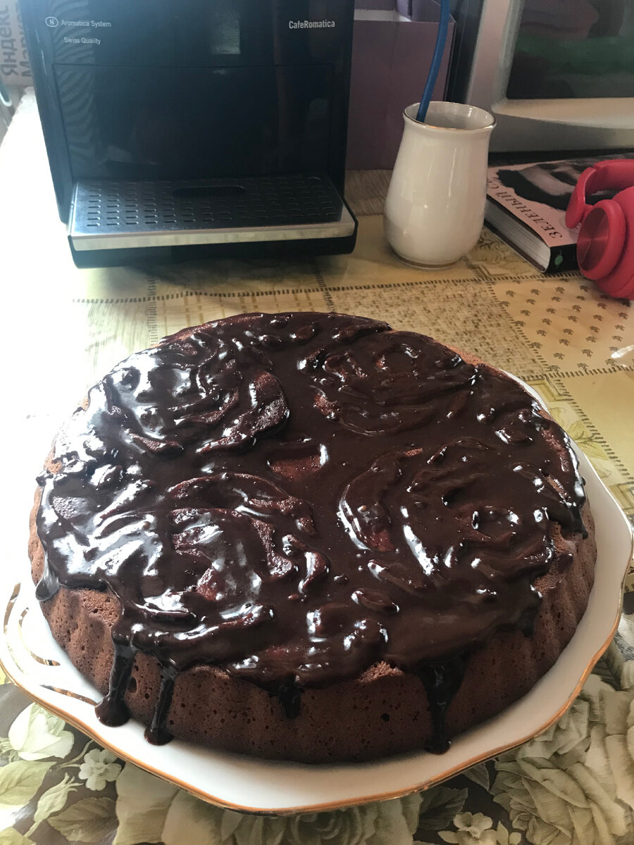 И снова здравствуйте !))) А если быть точнее, то добрый вечер! Решила написать ещё одну заметку, поделиться всё таки, какой на вкус получился пирог. Может и не очень красивый, но на вкус очень даже))) Меня волновало наличие в рецепте стакана растительного масла, но как оказалось зря я переживала. Нам всем понравился и вкус и текстура, такой шоколадный- шоколадный и влажный. В общем, всё как я люблю! Поэтому уверенно записала рецепт в свою книгу рецептов. Оставляю для вас рецепт, если кому то будет интересно: яйца- 2 шт(если мелкие, лучше 3) щепотка соли сахар- 1 стакан раст. масло- 1 стакан молоко- 1 стакан мука- 2-2,5 стакана( тесто должно быть не очень густым) разрыхлитель- 1 чайная ложка Сверху ещё горячий пирог залила горячей глазурью. На этой шоколадной ноте, прощаюсь с вами! До новых встреч!