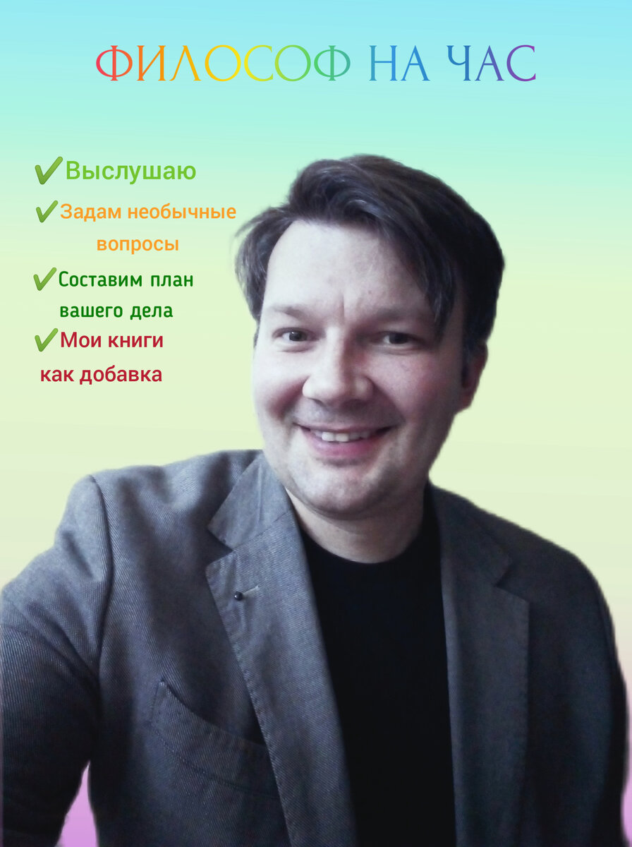 1️⃣ Пишите мне на WhatsApp (8 910 402 53 73) список своих целей, желаний, вопросов всего, что вас тревожит и требует систематизации. 2️⃣ В течение трёх дней после оплаты я проведу с вами первую философскую консультацию. Если потребуется, в течение одной-двух недель проведу ещё одну-две. Впрочем, если моя статья вас не убедила обратиться ко мне, можете и дальше жить так, как привыкли. Спасибо за внимание!