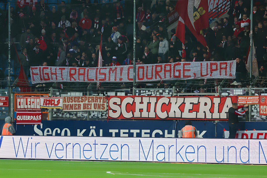 На 76-й минуте игры с «Бохумом» в Бундеслиге футболист «Баварии» в ходе борьбы за мяч рукой попал в лицо защитнику Кевену Шлоттербеку. Главный судья Даниэль Шлагер назначил пенальти и показал французу вторую желтую карточку (первую тот получил на 39-й минуте). Кевин Штегер реализовал одиннадцатиметровый – 3:1. Следует отметить, что 14 февраля в матче с «Лацио» (0:1) в Лиге чемпионов Упамекано тоже был удален за фол в собственной штрафной. После матча с римлянами защитник подвергся критике и столкнулся с оскорблениями на расовой почве. Во время игры с «Бохумом» болельщики вывесили баннер в его поддержку. Sports.ru проводит текстовую онлайн-трансляцию матча «Бохум» – «Бавария» (3:2). Фото: twitter.com/iMiaSanMia