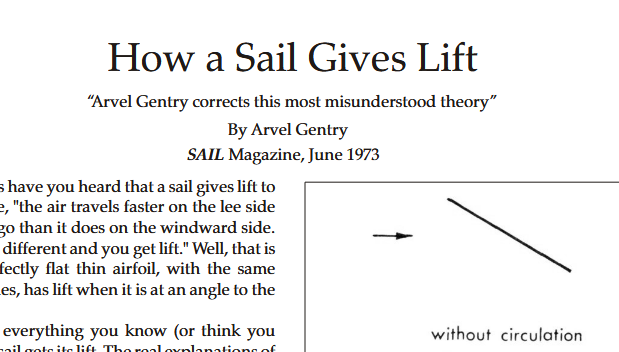 Мы предлагаем нашим читателям перевод статьи американского аэродинамика (NASA, Boeing, Lockheed), яхтсмена и просветителя Арвела Джентри. Статья является третьей в серии, в которой автор развивает базовые принципы теории паруса.