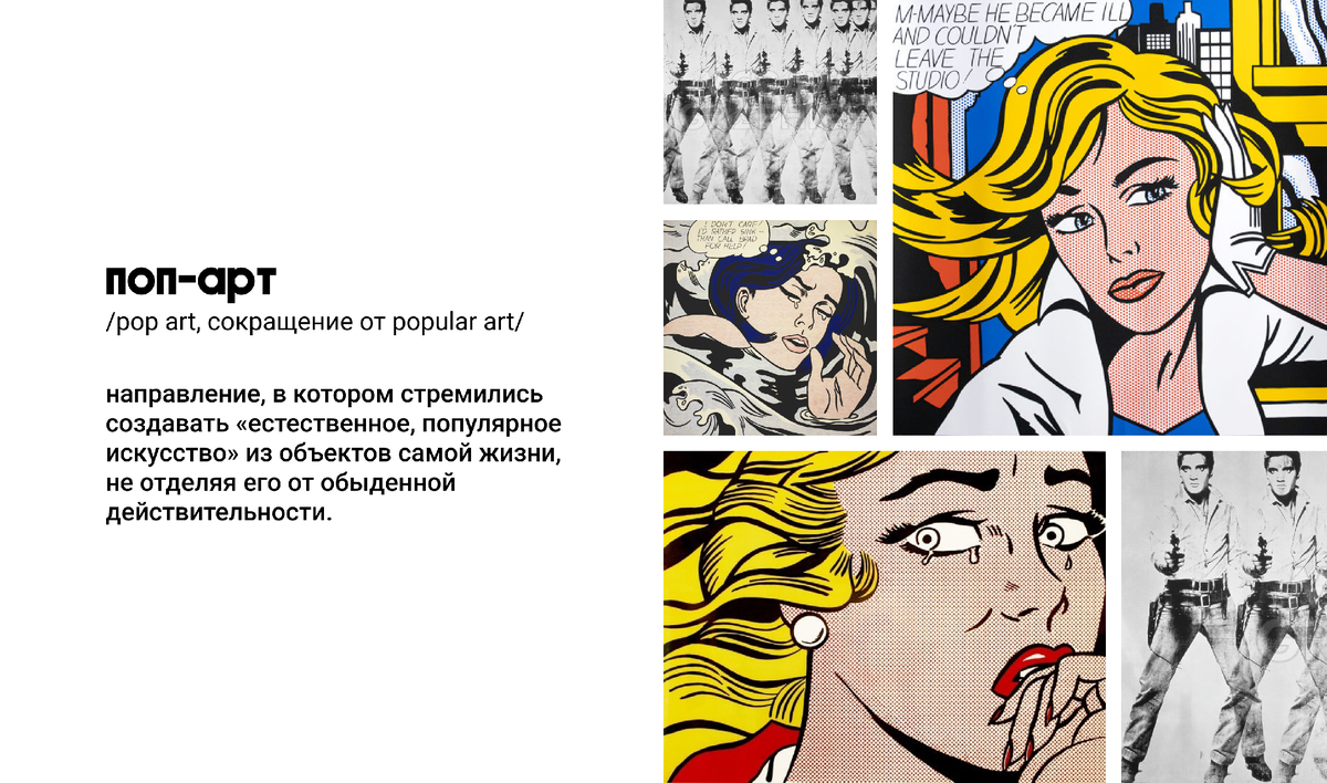Смелый, экспрессивный и красочный – мир поп-арта, зародившийся в 1950-х годах, продолжает оставаться актуальным и вдохновляющим по сей день. Зарождение новой эстетики В 1952 году молодые художники, писатели и критики объединились в институте современного искусства в Лондоне, критикуя традиционные взгляды на искусство как элитарное. Они стали внедрять идею массовости в искусство. И прозвали себя Независимой группой. Её член, а именно Ричард Хамильтон, внесли вклад, нарушая традиционные представления об искусстве и определяя поп-арт, как: Молодой, популярный, преходящий, массовый, остроумный, шуточный, шикарный и Большой Бизнес. Революция в искусстве В 1961 году Рой Лихтенштейн начал свой путь в новом направлении с изображения Микки Мауса, переосмысливая комиксы и визуальные языки массовой культуры в искусстве. На второй фотографии в галерее представлено оригинальное изображение. Рой стремился придать своим работам такой же идеальный облик, как у продукта, вышедшего с печатного станка, о