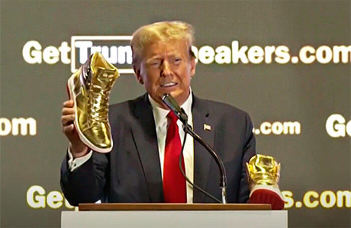 Нет, не лично, стоя за кассой. Хоть Трампа и обязали выплатить $355 млн по делу о гражданском мошенничестве, дела у него не настолько плохи. Бывший президент США выпустил собственную линейку кроссовок. На данный момент на выставке Sneaker Con было представлено три варианта обуви, среди которых есть кроссовки золотистого цвета. Именно эта модель уже объявлена распроданной. Ценовая политика на обувь от Трампа - от $199 до $399. Больше новостей со всего мира читайте в нашем телеграм-канале ЯСНО! Переходите по ссылке и скорее подписывайтесь :