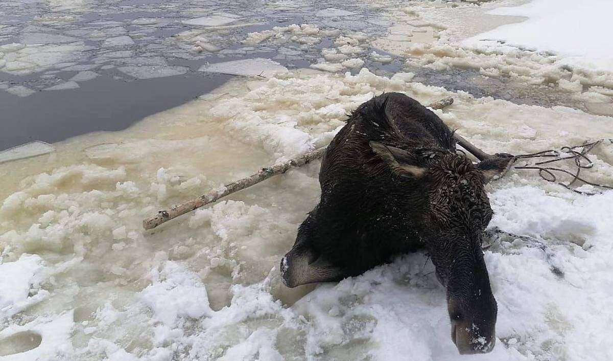Сотрудники МЧС вытаскивали животное из воды с помощью топора, бензопилы и верёвки. Также под лёд провалился и маленький лосёнок, который, к сожалению, не выжил.