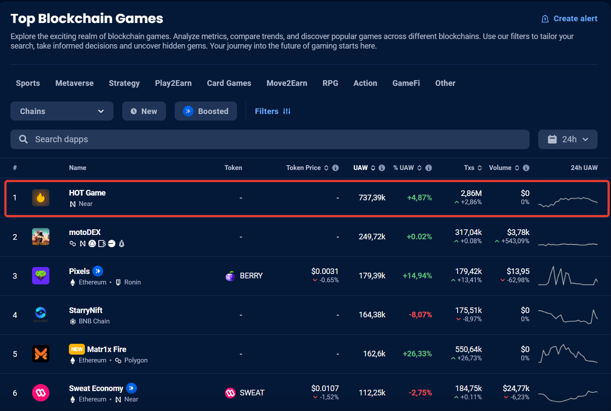 Друзья, рады сообщить, что игра по майнингу монеты HOT от NEAR Protocol стала самой популярной игрой по данным сервиса DappRadar! 🚀🚀🚀 (👉 ссылка на пост о сервисе DappRadar)