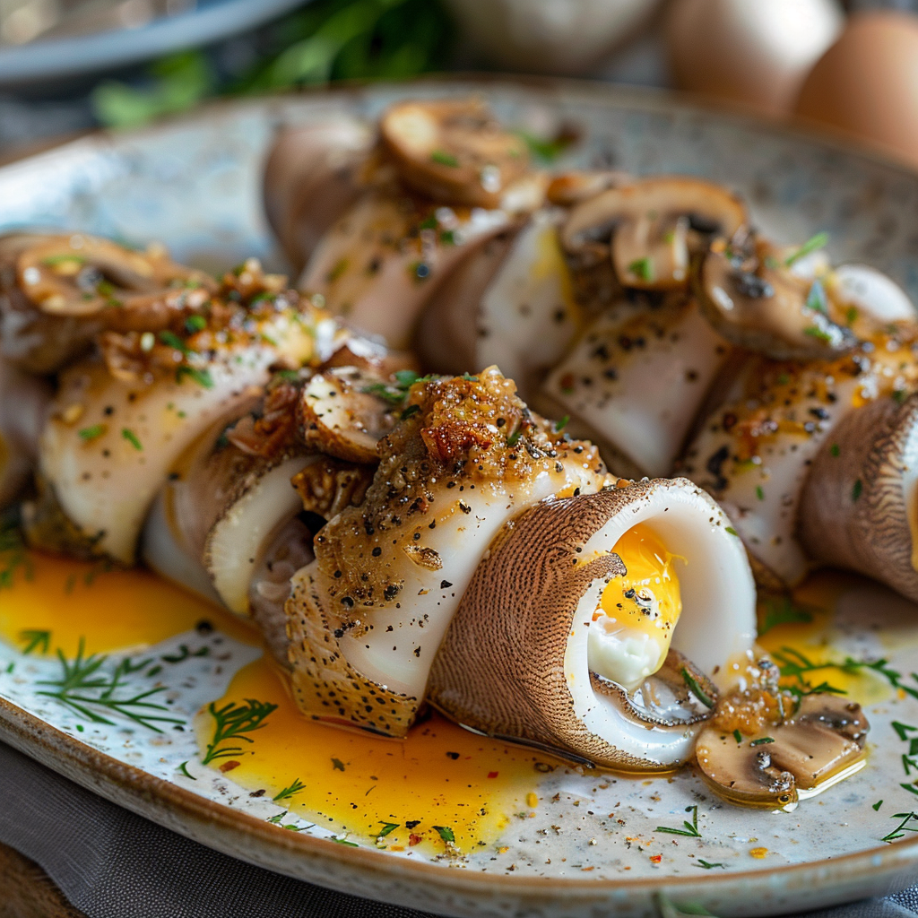 Фаршированные кальмары с грибами и яйцом - кулинарная симфония моря и леса. Соединение морепродуктов и земных даров в одном блюде подчеркивает многообразие вкусов и текстур, которые могут предложить эти, казалось бы, диаметрально противоположные ингредиенты. Кальмары, фаршированные грибами и яйцом, — это не только изысканный и элегантный вкус, но и стильное украшение любого стола.