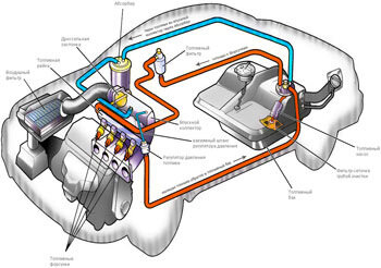 Топливная система – это комплект деталей и устройств, задача которых заключается в хранении, очистке и подаче топлива к мотору авто. Основными составляющими топливной системы являются: • Топливный бак – резервуар для горючего.