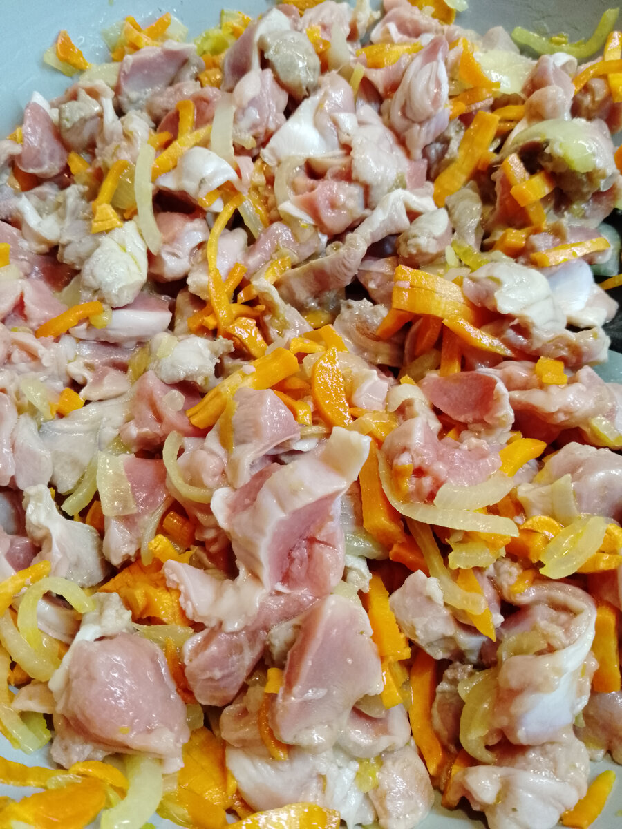 Многие не любят куриные желудки, так как они могут быть жесткими. Но если их потушить в сметане на не большом огне, то Вы получите очень вкусное и нежное блюдо. Для начала делаем зажарку из лука и моркови на растительном масле. Далее к зажарке добавляем куриные желудки нарезанные не большими кусочками. (У меня 400 гр. Куриных желудков) Обжариваем минут 5-7. Если Вы так же как и я любитель густых подлив, то на этом этапе добавляем к желудкам 2-3 столовые ложки муки и хорошо перемешивпем 2-3 минуты. Если не любите добавлять муку в соус, то смело пропускайте этот шаг. Далее добавляем 250 гр сметаны (у меня 20 процентов жирности) хорошо перемешиваем. Затем добавляем воду. Воду добавляем постепенно, хорошо перемешивая до той консистенции, которая Вам нравится. Если в процессе тушения соус загустеет, то можно добавить не много воды и разбавить. Солим, перчим. Тушим под крышкой на маленьком огне минут 50- 1 час до мягкости желужков. Если желудка все ещё жестко ваты потушить их ещё минут 1