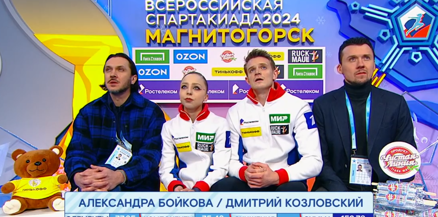 На Максиме Транькове из команды Тутберидзе лица не было: после произвольной программы Бойковой/Козловского он сидел в ожидании оценок совсем потухший, грубейшая ошибка подопечных на поддержке привела тренера в состояние грогги. Ранее, у Москвиной, типовой ошибкой Бойковой/Козловского было приземление Бойковой на выбросе и в параллельном прыжке. Здесь же, в Магнитогорске на Спартакиаде сильнейших, добавилось совсем нетипичное: от усталости и волнения партнеров – Бойкова сползла с поддержки на грудь Козловского, неловко и некрасиво. Дмитрий Козловский после окончания программы просто изгрызал себя внутренне, понимая, что их заклятые соперники такого случая не упустят. Не помогут и грибы для «школы Этери», которыми щедро осыпали вторую пару России. Тамара Москвина на девятом десятке – бодро прибыла в Магнитогорск и легко переиграла молодую Тутберидзе, которая этот внутрироссийский старт по обычаю игнорировала. Георгиевна осталась в Москве тренировать новообретенную (на место дисквалифицир