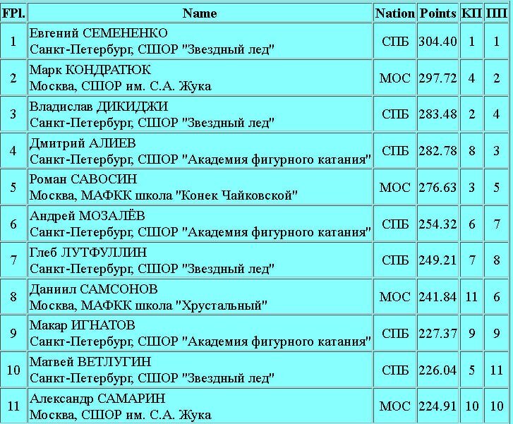 Евгений Семененко 199, 56 баллов за произвольную программу. Два четверных тулупа, квадосальхов и два тройных акселя. Техникой проигрывает Марку Кондратюку, да и Петру Гуменику. Надо усложняться Жене, потому что Кондратюк возрождается, а Гуменник развивается. Кстати, есть ведь ещё и фантастические грибы Самсонова. Кондратюк 199,37 балла за произвольную. Марк Кондратюк возрождается,как феникс из пепла - так пишут его поклонники. Конечно, перестал тратить время на шоу, поэтому результаты подросли. Вчера Марк выехал четверной лутц, четверной тулуп и два четверных сальхова на плюсы. Положительные гое были на двух тройных акселях. Техника проучила 106, 46. Столько же, сколько получила Саша Трусова на Олимпиаде. Чуть ошибся на тройном Лутце, но это был уже последний прыжок. Влад Дикиджи 183,56 за произвольную. На плюсы выехал два квада, но для победы этого маловато. Влад хорошо поработал в этом сезоне, думаю, что так долго форму держать пока тяжеловато. Третье место спартакиады весьма и