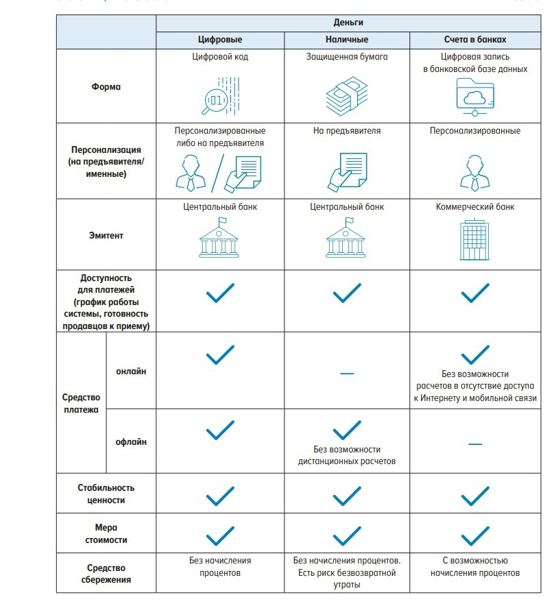 ...Цифровой рубль -- ДОПОЛНИТЕЛЬНАЯ форма российской национальной валюты, которая будет эмитироваться Банком России в цифровом виде. Цифровой рубль сочетает в себе свойства наличных и безналичных рублей.