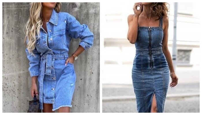 Джинсовые платья стали снова актуальным трендом. Модницы всех возрастных категорий будут выглядеть превосходно и женственно в правильно выбранных моделях джинсовых платьев. Джинсовый сарафан прямого кроя с тонкими бретельками в минималистичном стиле — удачный наряд, который могут смело приобретать модницы всех возрастов. Комбинировать джинсовый сарафан можно как со спортивной обувью, так и более женственными остроносыми моделями на каблуках. Джинсовое платье колорблок с глубоким «V»-образным вырезом прямого кроя также будет уместно смотреться на модницах всех возрастов. Легкий и воздушный многослойный сарафан из денима, украшенный рюшами и плетеным ремнем — наряд, который вы можете примерять на себя, как на торжество, так и просто на каждый день. Нежное и милое трапециевидное белое джинсовое платье с красивыми рукавами «фонариками» и акцентом на талии, в виде контрастного ремня, смотрится чудесно на модницах с любым типом фигуры. Этот крой платья никогда не выйдет из моды, так что, не