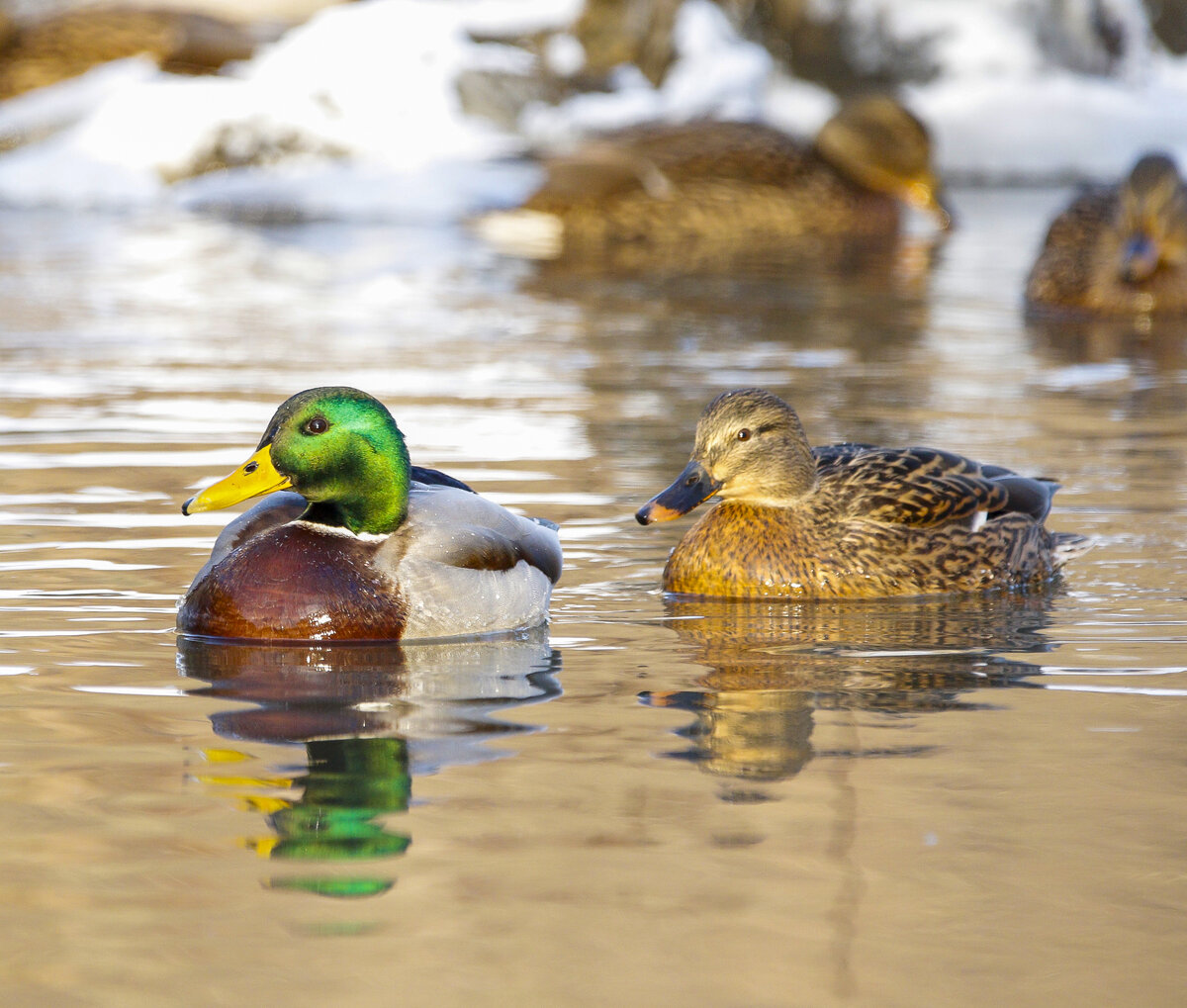 В столице одними из первых создают пары кряквы. Это самые распространенные обитатели природных территорий, их часто можно встретить на водоемах. Примерно с середины февраля у крякв начинается брачный период, или ток. Нередко за одной уткой ухаживают сразу несколько кавалеров. Самцы в танце забавно вытягивают и втягивают шеи, похлопывают по бокам крыльями, издавая пронзительные звуки.