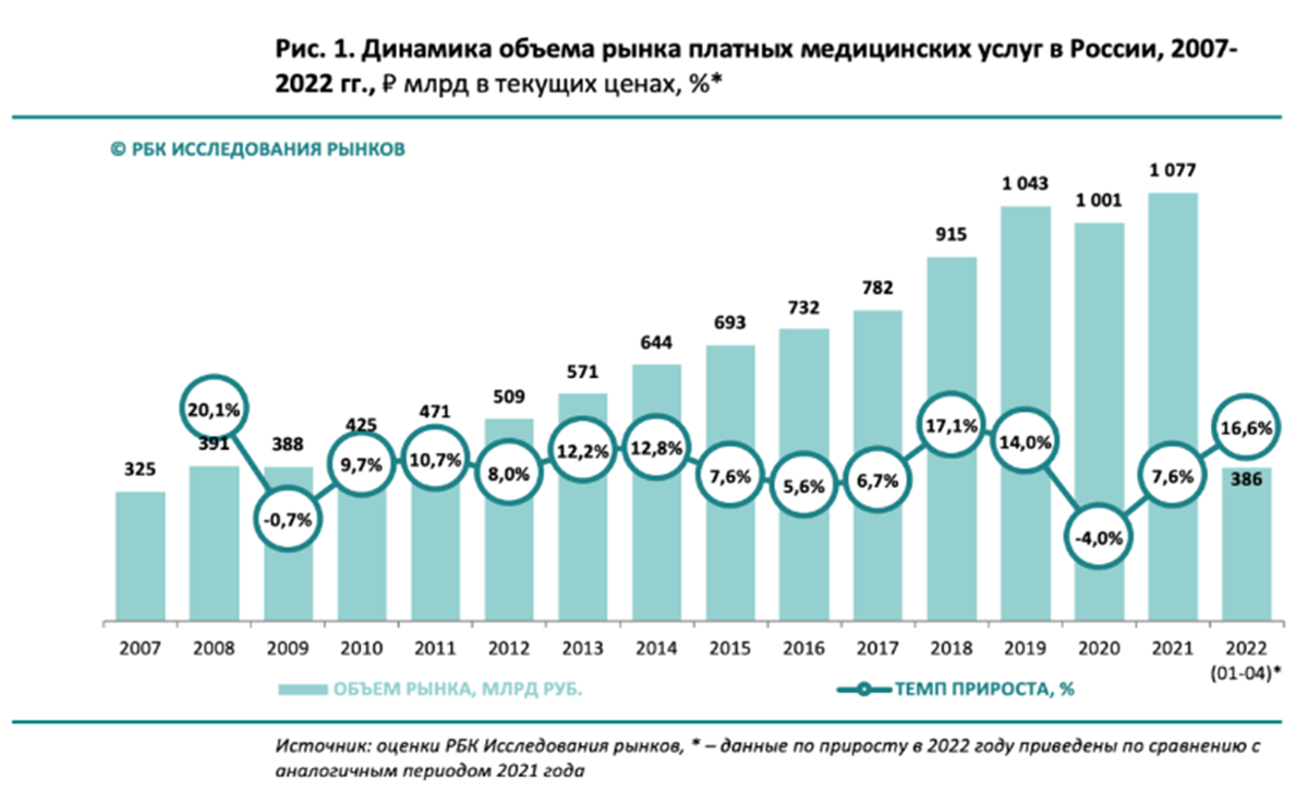 По данным РБК за период с 2007 года по 2022 год динамика рынка ПМУ в РФ выглядит следующим образом: