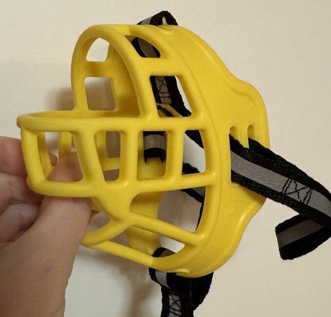 Есть два пути приучения к наморднику. Быстрый, но без гарантий, или медленный, но собака намордник полюбит и будет рада его носить. Способ первый не сложный, но собака должна быть в принципе не против, что на её моське появляется что-то новое. Если брать сибу, то с ними, в большинстве своем, этот вариант не прокатывает. Для приучения мы берем намордник с максимально просторной внутренней частью и большим пространством впереди. У нас такой: Для Дайки он оказался великоват, но для процесса приучения подошел отлично. А для ношения покупали уже другой формы и размера. Суть первого способа очень похожа на приучение щенка к ошейнику. Мы действуем мини сериями: одел-снял, постепенно увеличивая время ношения. Первый раз одеваем его на собаку и не застегиваем конструкцию, нам достаточно нескольких секунд. Сразу после одевания в отверстие перед носом просовываем лакомство, которое собака съедает. Затем снимаем намордник. Через некоторое время снова одеваем и сразу даем кусочки, один за другим,