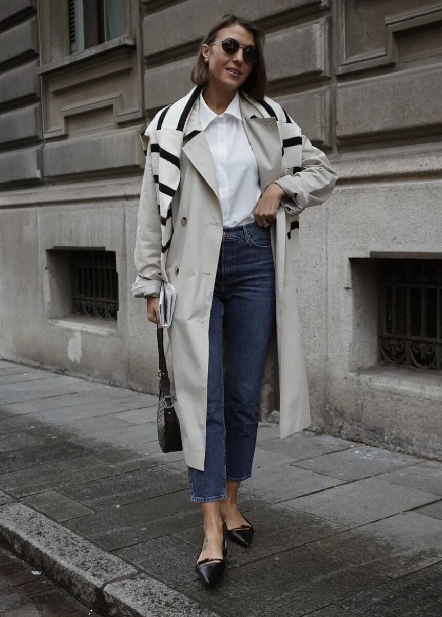 Обзор минималистичных женственных комплектов на весну, которые можно собрать из того, что уже сейчас есть в гардеробе. Все вещи в этих образах сочетаются между собой и имеют максимальную комбинаторику Что может быть универсальнее белой рубашки простого кроя, классической пары джинсов и базового плаща нейтрального оттенка. Однако несмотря на высокую комбинаторику каждого изделия, образ получается безупречным, транслирует легкий налет французского стиля, женственности и уверенной сдержанности. Такой комплект уместен в любой ситуации и смотрится выигрышно, несмотря на свою простоту, а во многом и за счет нее. Дорого, статусно, благородно - именно такое впечатление транслирует другой базовый комплект в коричневом цвете. Коричневый во всех его оттенках и в любой температуре всегда выглядит достойно. Также этот цвет считается четвертым ахроматом за счет своей высокой комбинаторики - его можно с закрытыми глазами сочетать с любыми другими цветами. В этом комплекте смело можно отправит