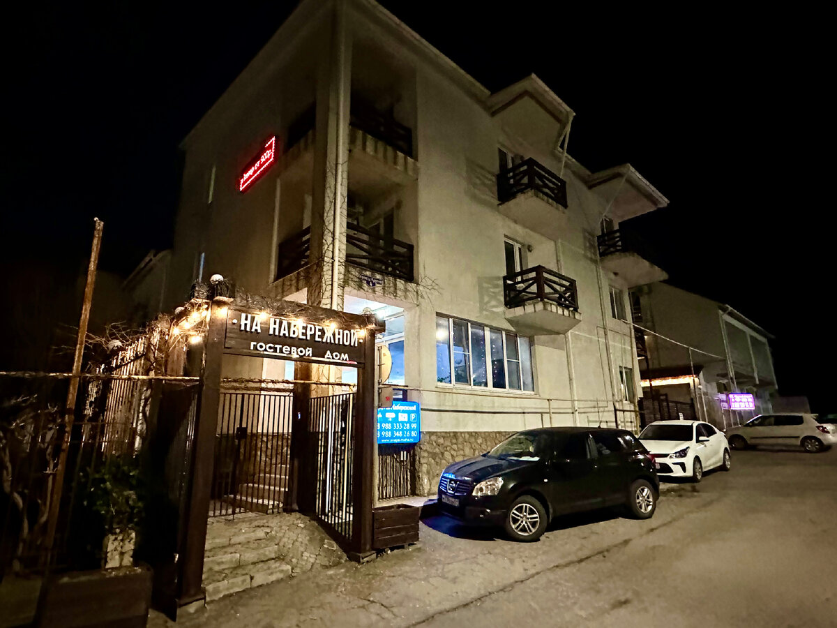 Я так скажу, мы здесь точно первый и последний раз, но вы решайте сами. Летом именно этот номер будет стоить в районе 4000 рублей в сутки, и тут же, узнав эту информацию, я сравниваю соотношение цены и качестве с уже знакомыми действительно хорошими вариантами на самом дорогом курорте Крыма – в Ялте. Разница огромная.